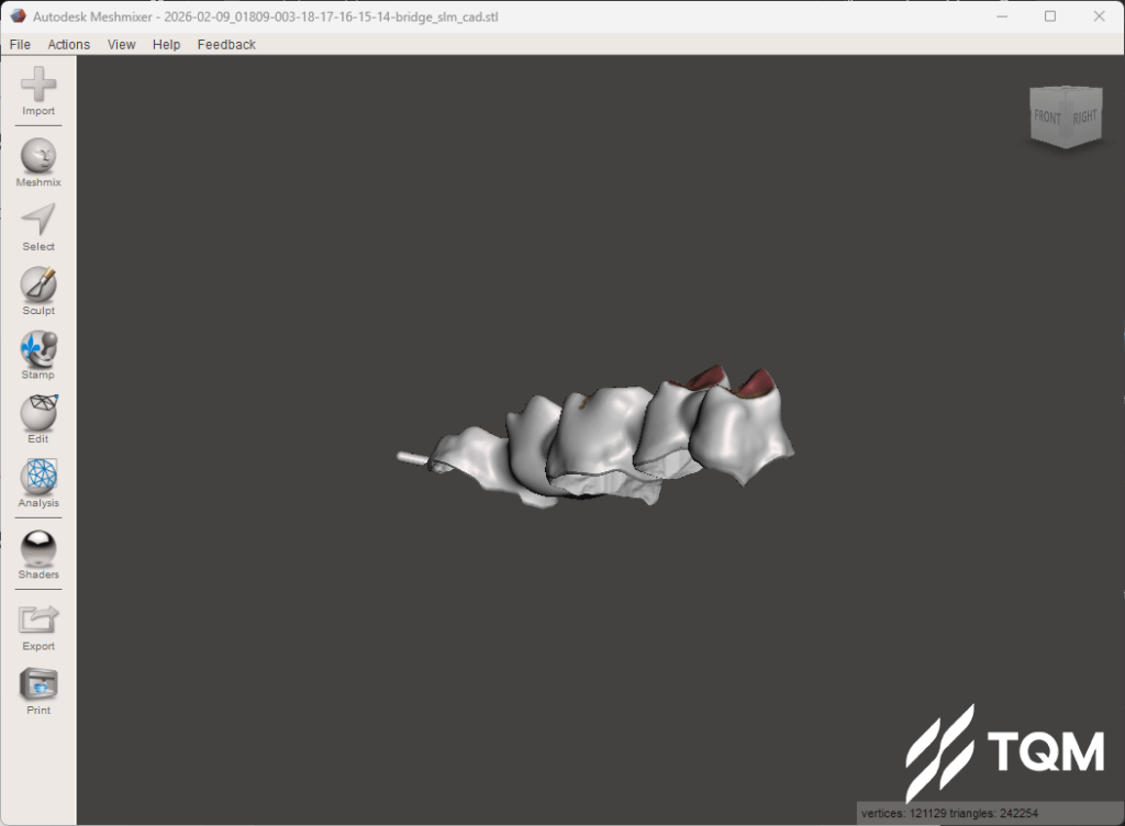 - Torna sul software CAD utilizzato per la modellazione del file (Exocad, 3Shape, Blender, …)